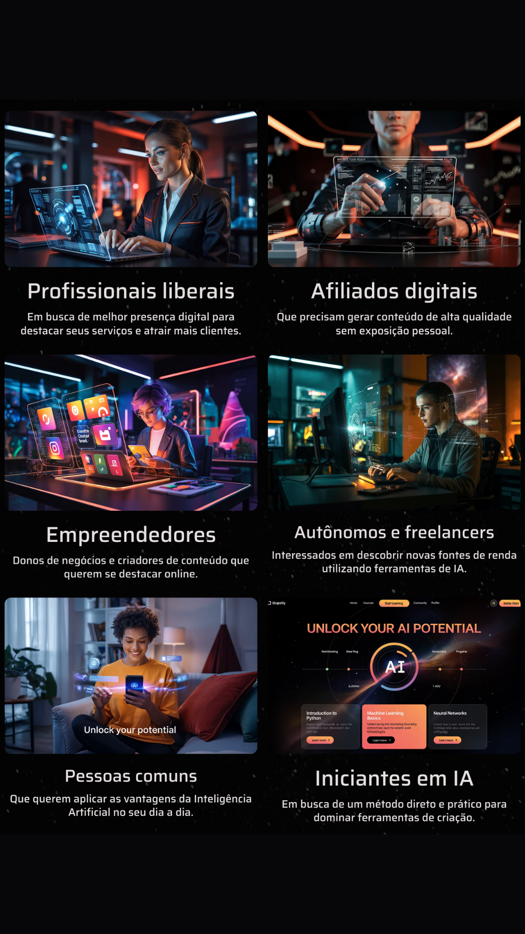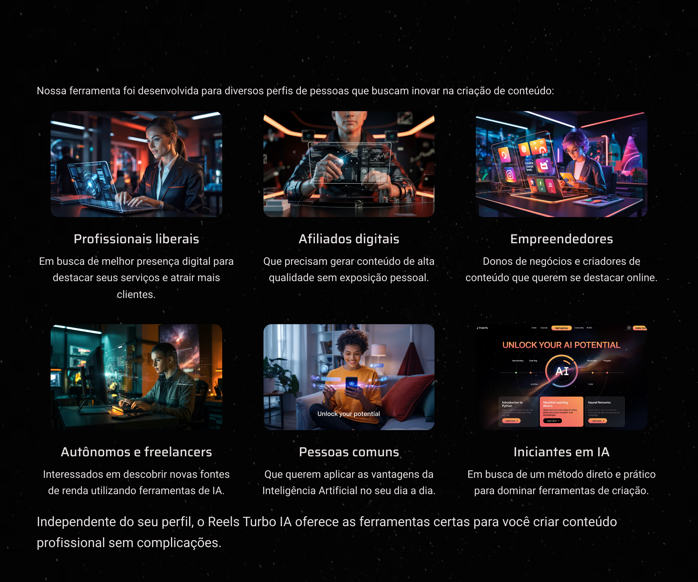 Foi com essa mesma visão que criei o Reels Turbo IA — um curso direto, prático e atual para quem quer usar a inteligência artificial a favor da criatividade, da visibilidade e dos resultados.